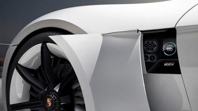 calls this concept turbo-charging. Plans are already in place to equip charging stations along German freeways with 800-volt technology. The can make do with less, of course. It can be charged at conventional 400-volt stations, or inductively and conveniently in its own garage. With a coil installed in the garage floor, all the car has to do is park over it for power to be transferred wirelessly to the coil’s counterpart in the underbody.